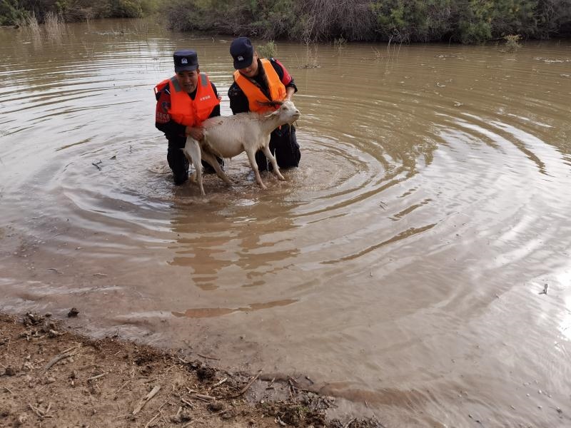 “請(qǐng)民警同志幫幫忙,我的羊群被困在河里了,這可是我的命根子啊!”2020年9月8日8時(shí)許,蘇泊淖爾邊境派出所一個(gè)報(bào)警電話(huà)打破了清晨的寧?kù)o,來(lái)電的是內(nèi)蒙古額濟(jì)納旗蘇泊淖爾蘇木牧民布某。原來(lái),夜里黑河漲水,他家的幾十只羊被困,望著身陷險(xiǎn)境的羊群,焦急的布某打通了派出所的報(bào)警電話(huà)。