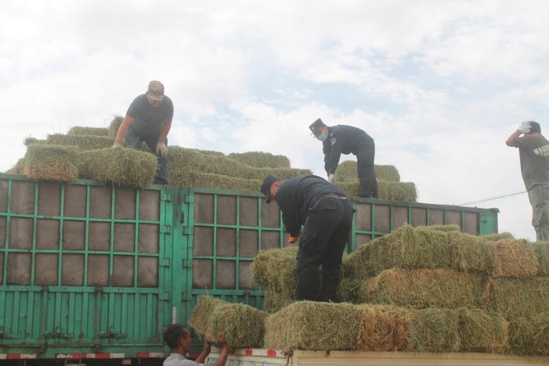 今年以來,內(nèi)蒙古自治區(qū)西部的阿拉善盟持續(xù)高溫少雨,阿拉善左旗蘇宏圖地區(qū)草場退化嚴(yán)重,駝、羊等牲畜草料嚴(yán)重匱乏,影響了牧民正常生產(chǎn)生活。8月9日,從甘肅省購置的草料順利抵達(dá)蘇宏圖,但是由于缺少精壯勞動(dòng)力,牧民們望著一車車救命的草料卻犯起了難。正當(dāng)大家一籌莫展之際,派出所聞?dòng)嵔M織6名民警組成黨員先鋒隊(duì)投入勞動(dòng),經(jīng)過3天的努力,成功將70噸1200捆草料分裝到牧民車上,受到群眾的一致好評。(牛鑫 肖鵬 梁鎮(zhèn))