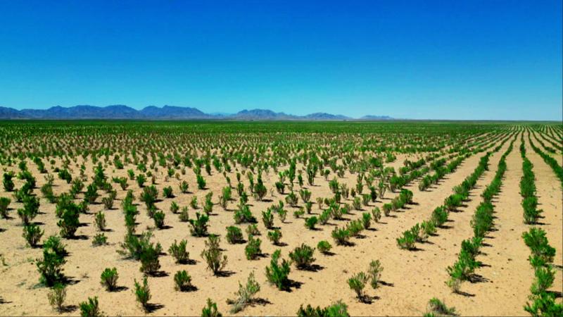 “過(guò)去守著沙地受窮,現(xiàn)在靠著沙地致富?!卑⒗朴移炻吕K木的馬奮梅是當(dāng)?shù)厣钞a(chǎn)業(yè)發(fā)展的受益者之一。自2007年以來(lái),她靠著邊學(xué)習(xí)邊實(shí)踐,累計(jì)種植梭梭林20余萬(wàn)畝,并成立公司,帶領(lǐng)千余名農(nóng)牧民在漫漫黃沙中掘金、從生態(tài)治理中致富。
