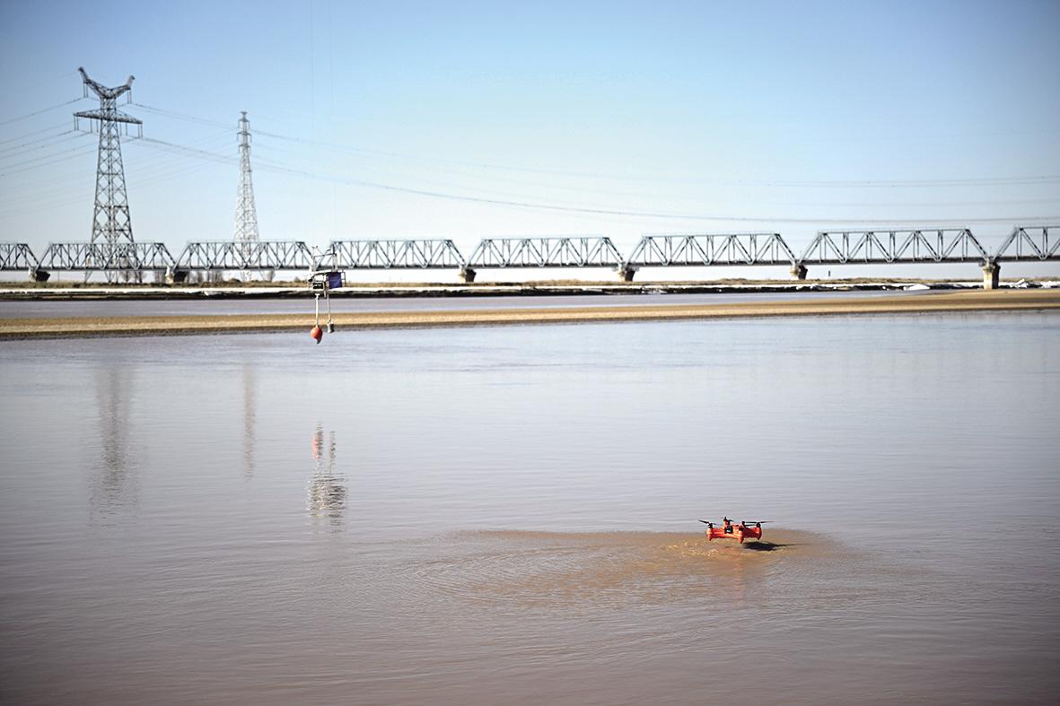 近日,隨著氣溫回升,黃河內(nèi)蒙古段多處已進入開河期,有關部門有序開展防凌工作,確保黃河內(nèi)蒙古段全線穩(wěn)定開河。圖為3月17日在內(nèi)蒙古包頭市黃河水利委員會寧蒙水文水資源局包頭水文站拍攝的測深測速兩棲無人機。