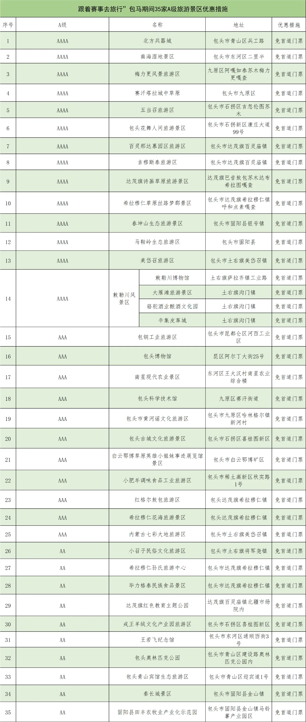 馬拉松參賽選手游包頭,景區(qū)免票!