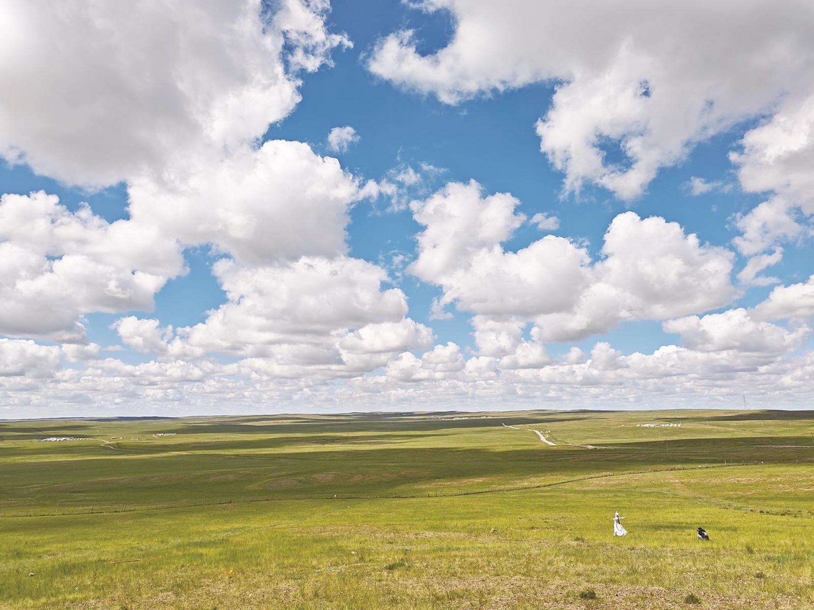 藍天、白云、大草原。