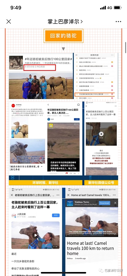 緊跟當(dāng)?shù)責(zé)狳c(diǎn)新聞,關(guān)注民生民情,打造了“輸入法爸爸”“聽音樂(lè)的羊”“蒙古舞課間操”“11歲男孩豬圈寫作業(yè)順手接生了7頭豬崽”等一批點(diǎn)擊量超千萬(wàn)次的現(xiàn)象級(jí)融媒體“爆款產(chǎn)品”,視頻總點(diǎn)擊量超過(guò)1億。特別是“蒙古舞課間操”,2020年9月28日在央視一套《新聞聯(lián)播》播出,是全自治區(qū)首家在央視一套《新聞聯(lián)播》播出的黨報(bào)媒體。原創(chuàng)短視頻《一路跋山涉水,巴彥淖爾這只回家的駱駝感動(dòng)戈壁》先后登上微博熱搜、抖音熱榜,被央視新聞、人民日?qǐng)?bào)客戶端、新華社客戶端、騰訊新聞及全國(guó)各大媒體的微信、微博、抖音、快手爭(zhēng)相轉(zhuǎn)發(fā),僅微博話題閱讀量就達(dá)到了3億次。