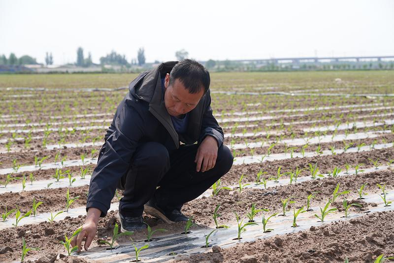 種糧大戶楊志泉察看玉米長(zhǎng)勢(shì)