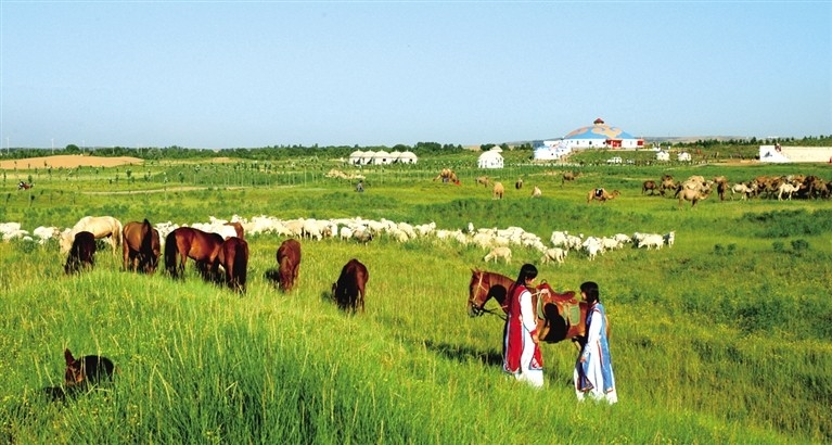 生態(tài)的改善增加了鄂爾多斯的旅游收入,草原景觀美不勝收。