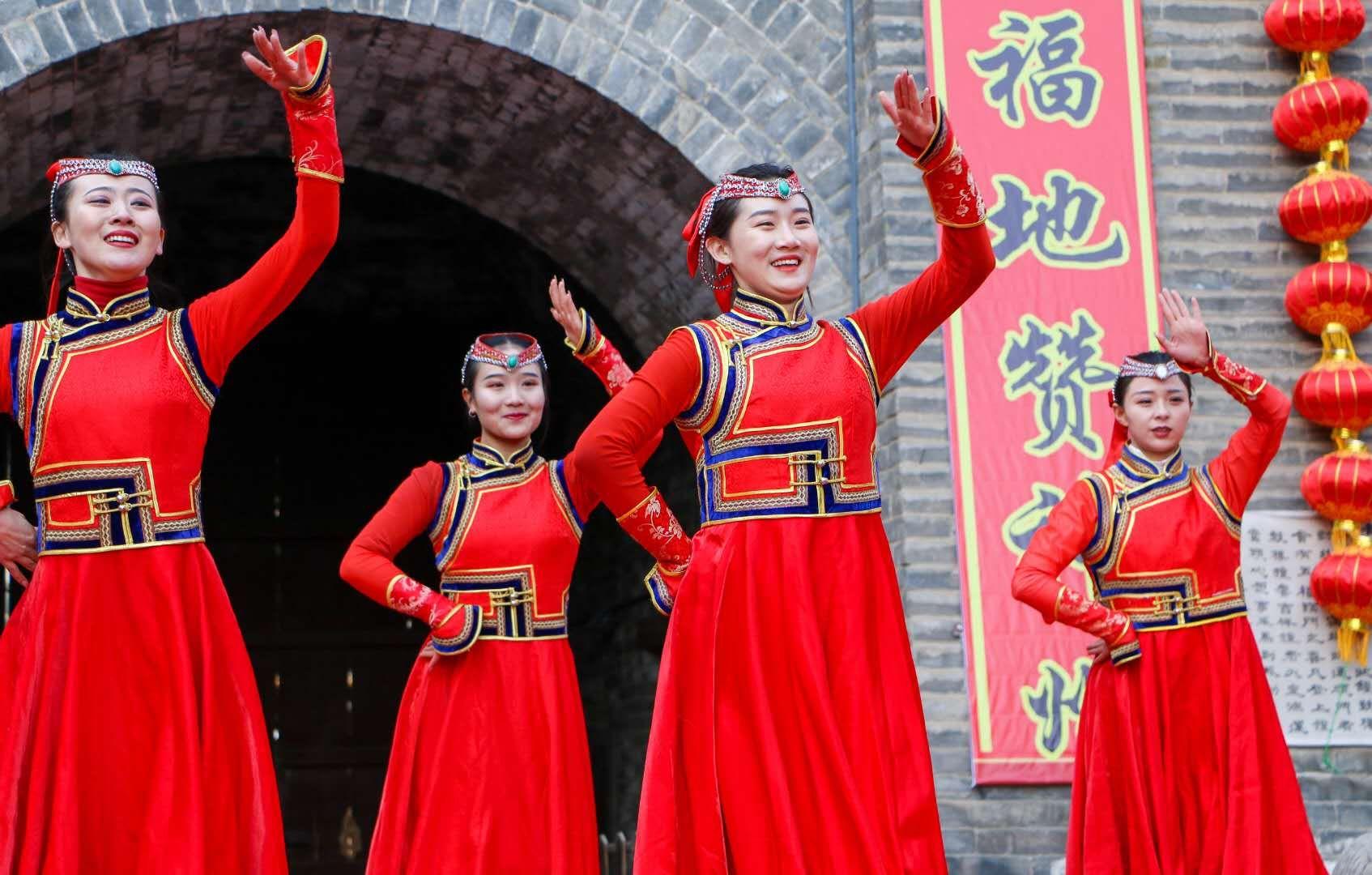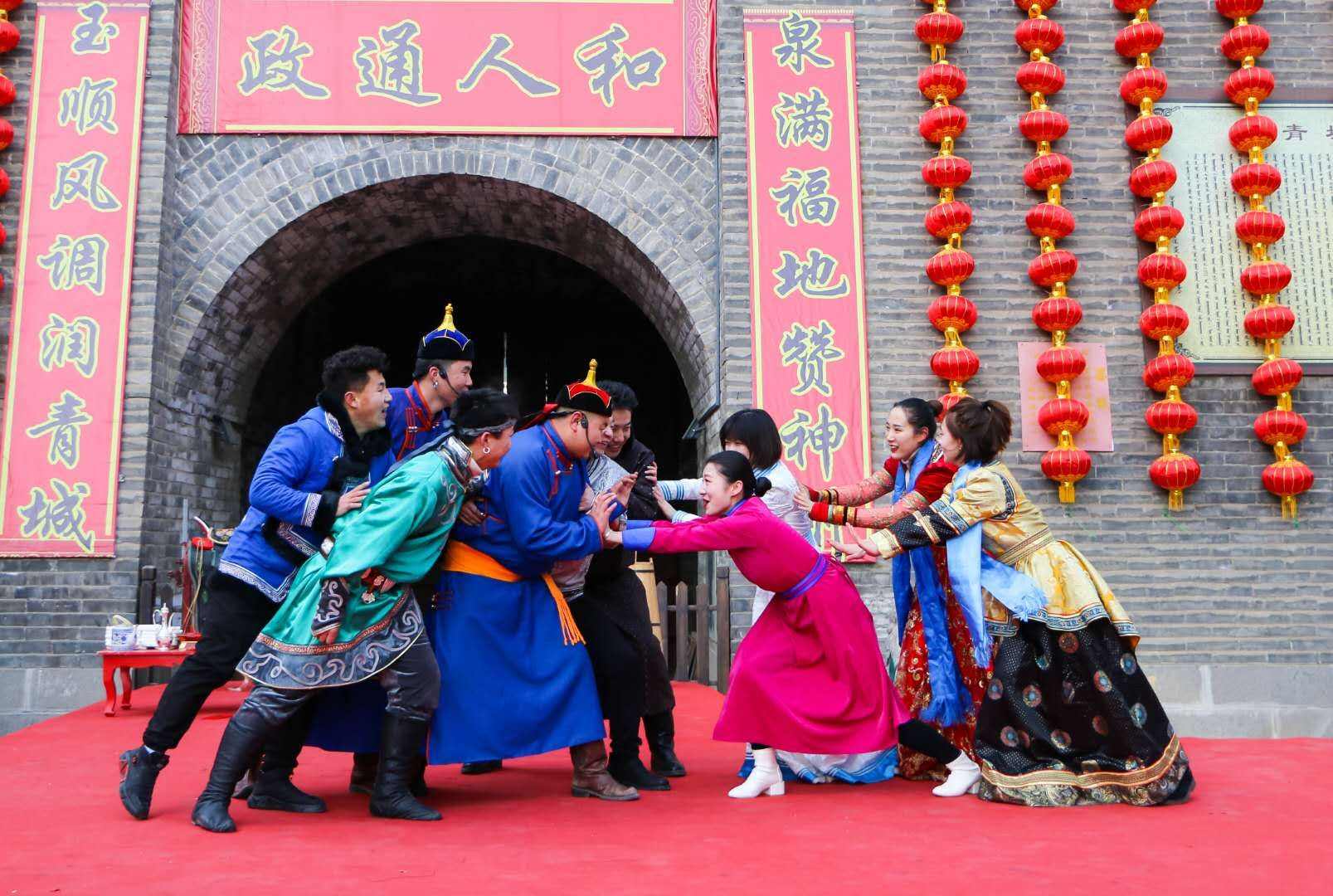 2月10日,作為大召文化廟會(huì)期間精心打造節(jié)目之一的歌舞表演《蒙古族婚禮》在塞上老街西口鐘鼓樓上演,向青城百姓展示蒙古族婚俗風(fēng)情。