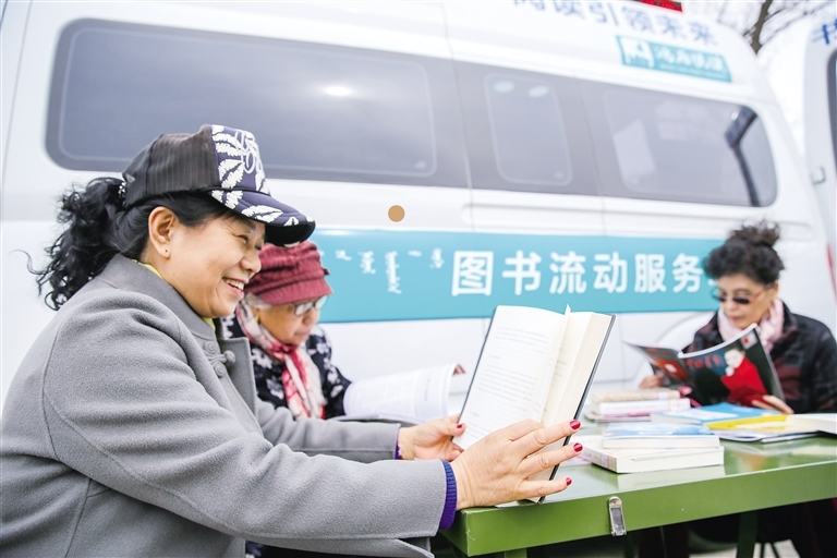 4月10日,首府市民在位于烏蘭夫紀(jì)念館的圖書流動服務(wù)車上借閱圖書。當(dāng)日,呼和浩特市圖書館圖書流動服務(wù)車開啟“公交服務(wù)”模式,第一站駛進(jìn)了烏蘭夫紀(jì)念館。據(jù)了解,圖書流動服務(wù)車裝載各類新書2000余冊,功能齊全,設(shè)施先進(jìn),車內(nèi)裝備自助借還機、自動化遮陽棚、電視及書架、坐席等,是一座流動的圖書館,方便讀者就近借還圖書。