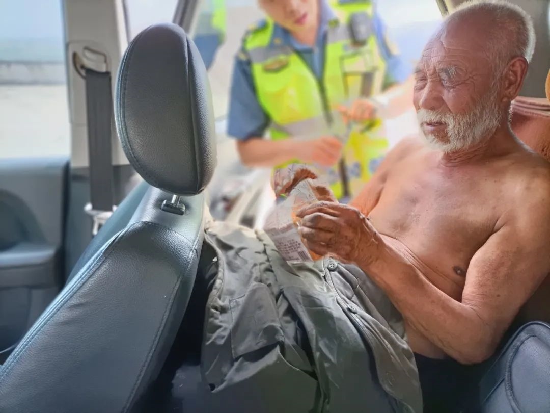 7月27日10時10分許,內(nèi)蒙古自治區(qū)公路路政執(zhí)法監(jiān)察總隊(duì)呼和浩特支隊(duì)第三大隊(duì)的李超和張鵬飛在呼北高速公路巡查過程中,發(fā)現(xiàn)一位老人光著膀子獨(dú)自走在高速公路中間,快速行駛的車輛不時從老人身邊呼嘯而過,稍有不慎就可能引發(fā)重大道路交通事故。
