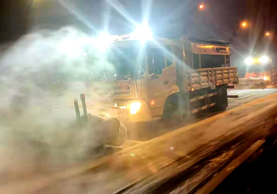 呼和浩特環(huán)衛(wèi)部門聞雪而動連夜清掃道路積雪