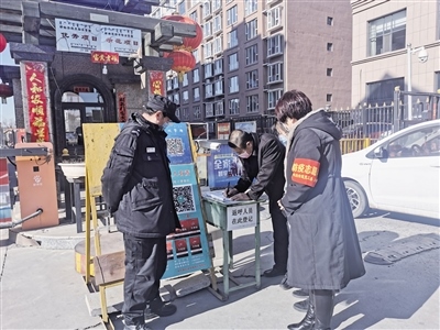 記者跟隨工作人員來到轄區(qū)地新街坊小區(qū),幾名社區(qū)工作人員正在小區(qū)門口負(fù)責(zé)疫情防控,“您好!請問您去哪棟樓?請下車登記信息。謝謝!”“請居民佩戴好口罩”……針對出入小區(qū)的人員,社區(qū)工作人員都一一仔細(xì)核查,宣傳防疫信息?!按汗?jié)長假過后,很多事都堆到今天了,所以格外忙?!卑⒗票甭飞鐓^(qū)黨總支書記王海瓊說,阿拉善北路社區(qū)很多網(wǎng)格員都放棄了與家人團聚的時間,主動下沉到各個小區(qū)開展疫情防控工作,實行24小時輪崗制,做好外地返呼人員登記和掃碼工作,保證轄區(qū)防控安全。除此之外,還積極參與禁燃煙花爆竹、垃圾分類宣傳等工作,讓政策落到實處。