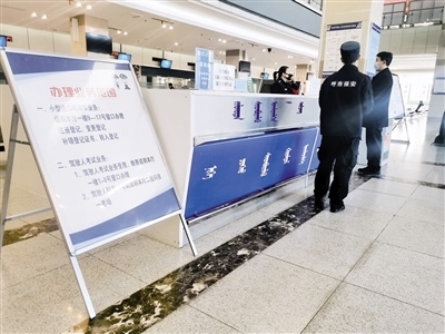 “你好!違章查詢和罰款繳納需要去交管隊,不在這里辦理。如果是本人車輛,也可下載12123 APP進行辦理?!?月18日9時10分,記者走進呼和浩特市交警支隊車輛管理所,在政務(wù)服務(wù)中心東大廳正對著大門的導(dǎo)辦臺,一位民警正在接受市民業(yè)務(wù)咨詢。記者看到,大廳里往日喧囂熱鬧的場景不見了,只有零星幾位市民在辦理業(yè)務(wù)。