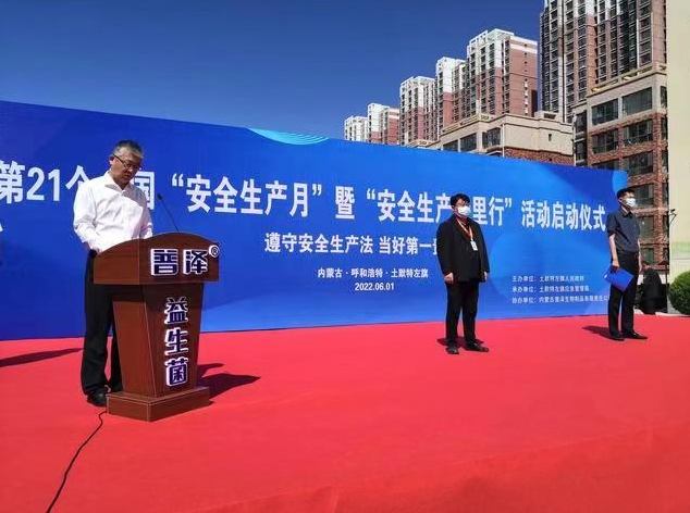 當(dāng)好第一責(zé)任人”為主題的土左旗2022年“安全生產(chǎn)月”暨“安全生產(chǎn)萬里行”活動啟動儀式,在普澤生物舉行?,F(xiàn)場,40個旗直單位和12家企業(yè)的代表參加了啟動儀式。