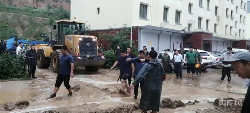 清水河縣組織部機關黨員干部在清水河縣河畔花園小區(qū)東區(qū)參加防汛抗洪(央廣網(wǎng)發(fā)潘磊攝)