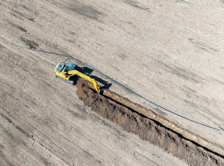 工人駕駛挖掘機進行高標準農(nóng)田施工作業(yè) 林則志攝影