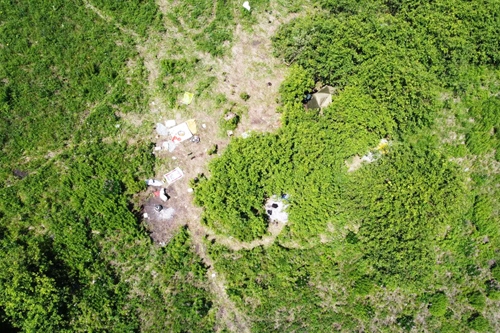 無人機(jī)傳回的非法采挖野生藥材窩點(diǎn)現(xiàn)場(chǎng)畫面。