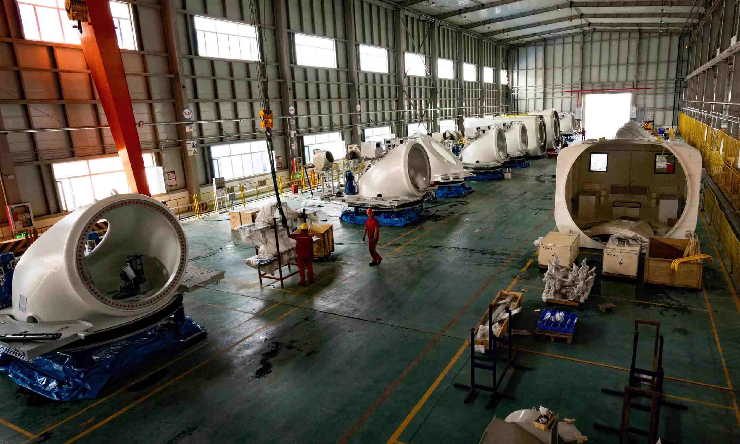 金風(fēng)科技公司工人在安裝風(fēng)機主機。邱金鵬攝