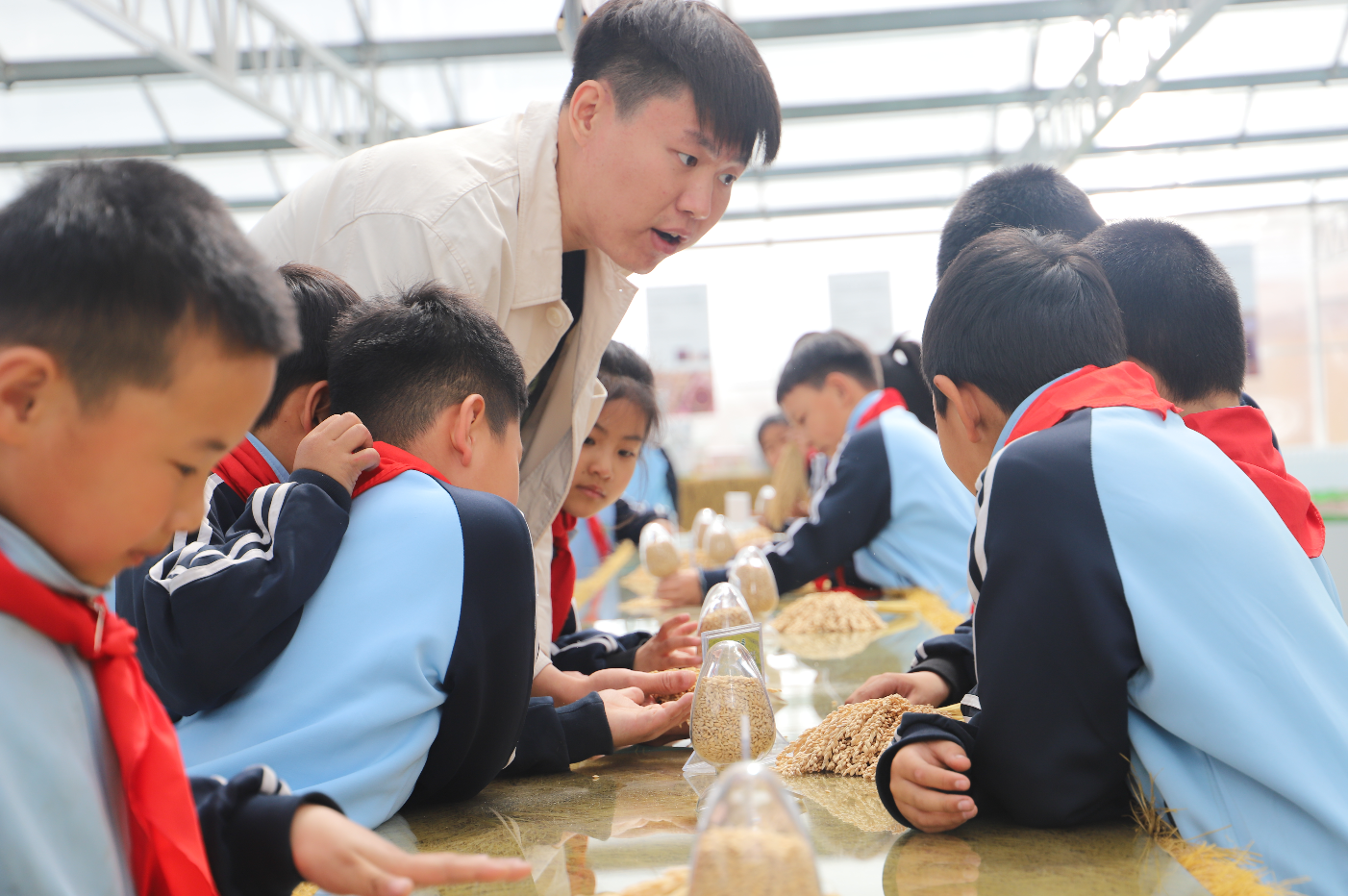 “同學(xué)們,大家快看,這是水稻的幼苗。再過幾個(gè)月,它們就會(huì)長成金燦燦的稻穗啦!”科技小院的講解員老師一邊指著嫩綠的秧苗,一邊繪聲繪色地向孩子們介紹水稻的生長過程。