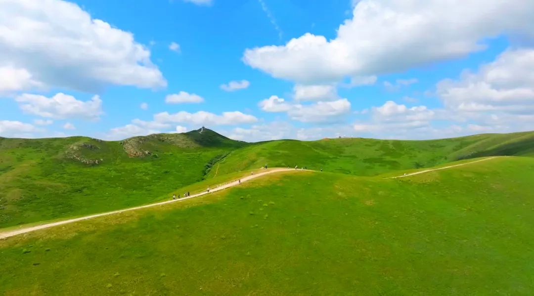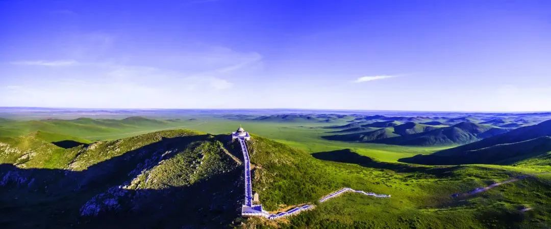 瞭望山上遙望草原,層層山巒望不斷。游客可徒步登山,有寬厚的臺(tái)階直通山頂,當(dāng)你登上最高點(diǎn),感受四野空曠的幽靜,仿佛真的可以瞭望千里外的風(fēng)光。