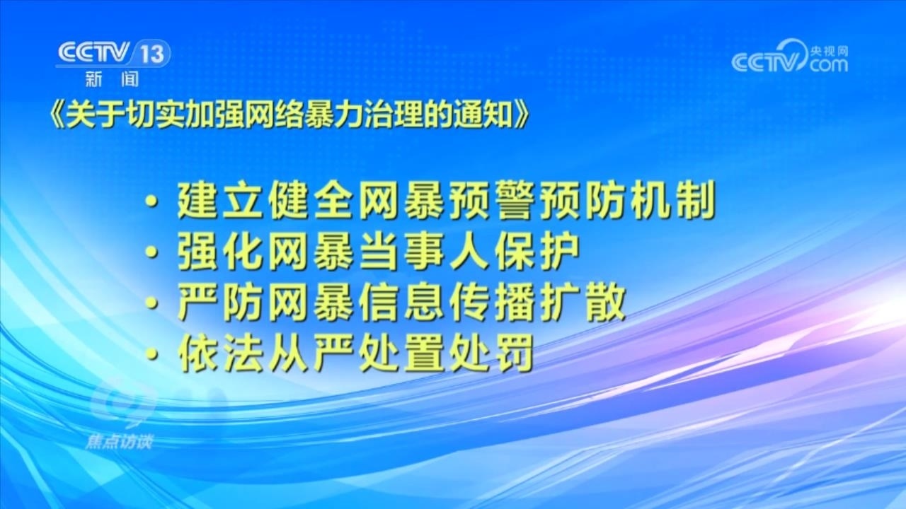 在2022年11月,中央網(wǎng)信辦印發(fā)的《關(guān)于切實加強網(wǎng)絡(luò)暴力治理的通知》中,明確提出要建立健全網(wǎng)暴預(yù)警預(yù)防機制、強化網(wǎng)暴當(dāng)事人保護、嚴(yán)防網(wǎng)暴信息傳播擴散、依法從嚴(yán)處置處罰。