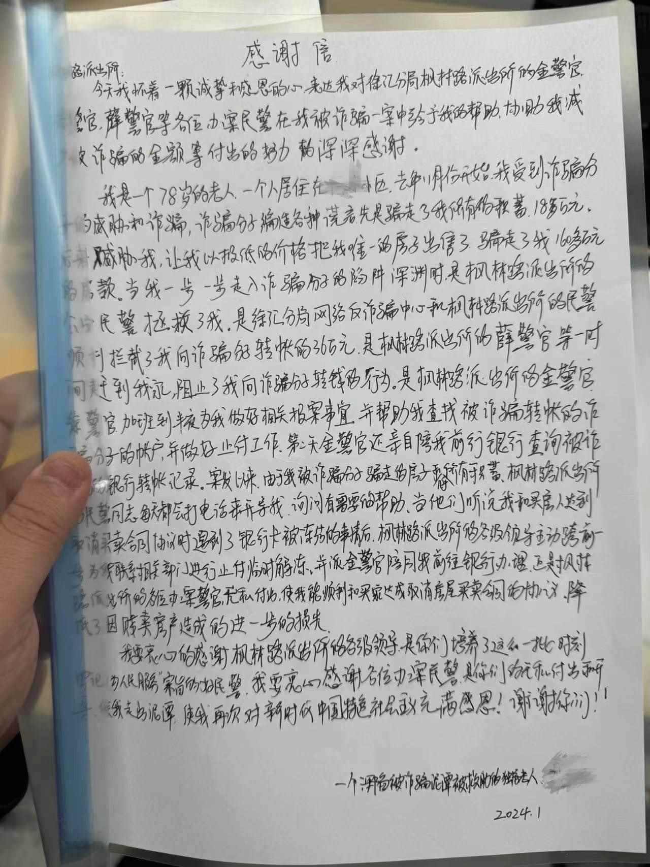 “我要衷心感謝各位辦案民警,是你們的無(wú)私付出和開導(dǎo),使我走出泥潭!”事后,市民劉女士向楓林路派出所民警送來(lái)感謝信。