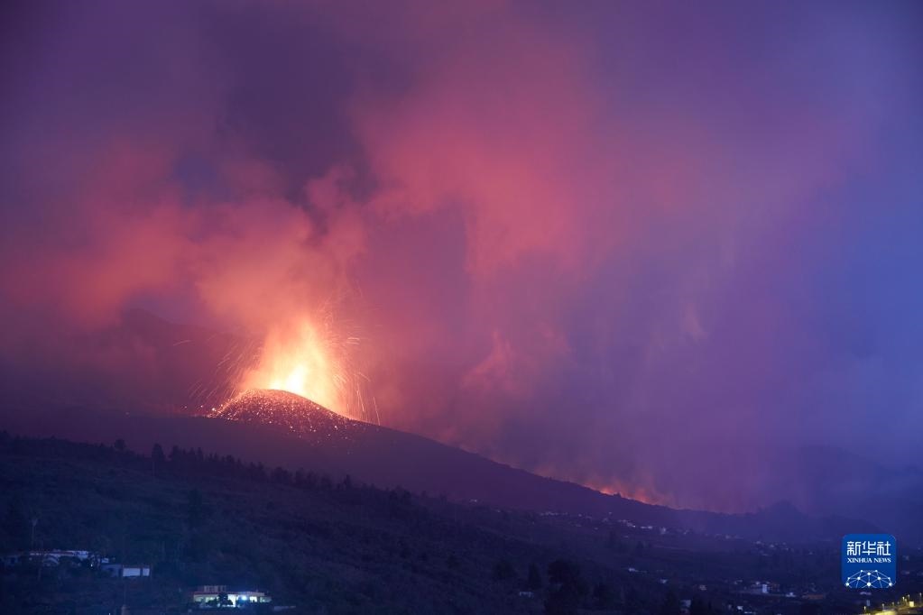 這是9月23日在西班牙拉帕爾馬島拍攝的火山噴發(fā)景象。