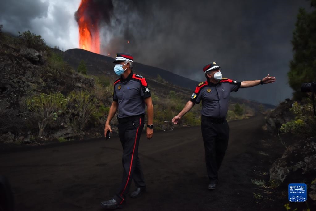 9月22日,警察在西班牙拉帕爾馬島老昆布雷火山附近阻止游人靠近。
