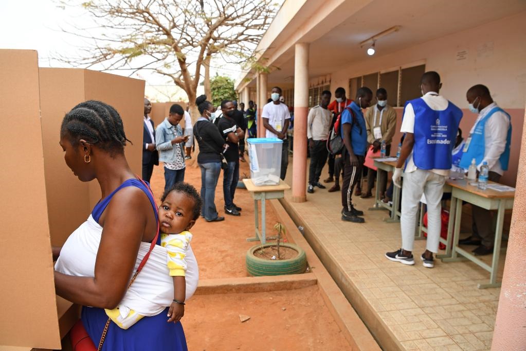 8月24日,選民在安哥拉羅安達(dá)省的一處投票站參加大選投票。(新華社記者陳誠攝)