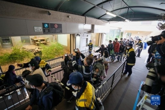2月19日,在日本東京上野動(dòng)物園,游客排隊(duì)與大熊貓“香香”告別。新華社記者 張笑宇 攝