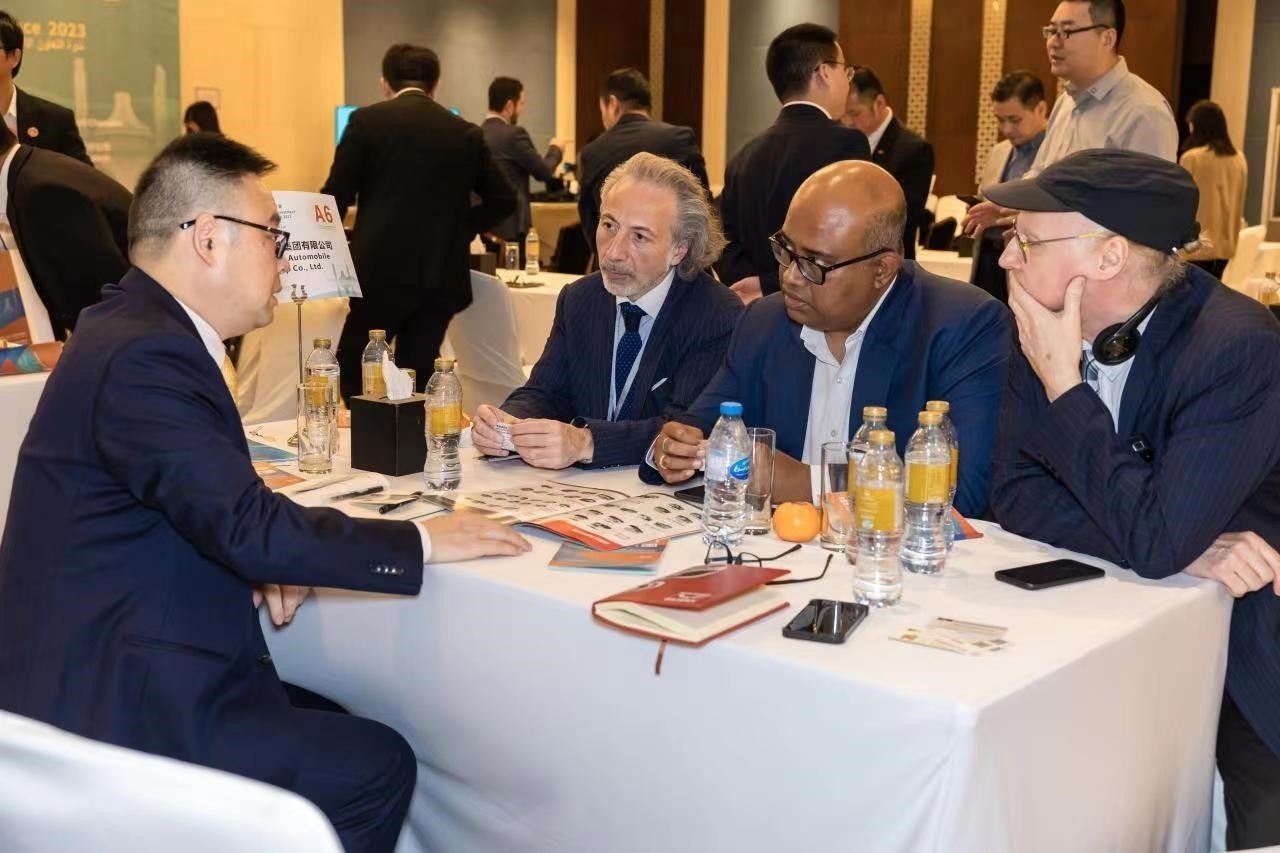 在企業(yè)自由對接環(huán)節(jié),參會的廣西企業(yè)高管與阿聯(lián)酋當(dāng)?shù)仄髽I(yè)代表,在會場設(shè)立的物流、農(nóng)產(chǎn)品及食品、裝備制造、通關(guān)服務(wù)、影視動漫、清真產(chǎn)品等領(lǐng)域企業(yè)洽談區(qū),進(jìn)行了面對面洽談,現(xiàn)場交流氣氛熱烈。