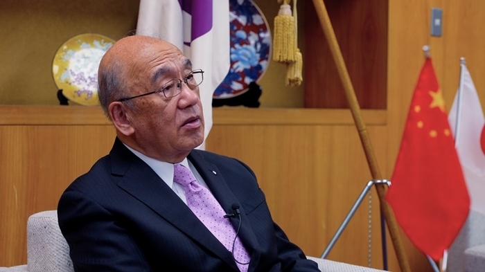 日本奈良縣知事荒井正吾接受人民網(wǎng)專(zhuān)訪。人民網(wǎng)視頻截圖