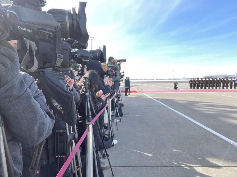抵達(dá)時,俄方在機(jī)場舉行隆重迎賓儀式。
