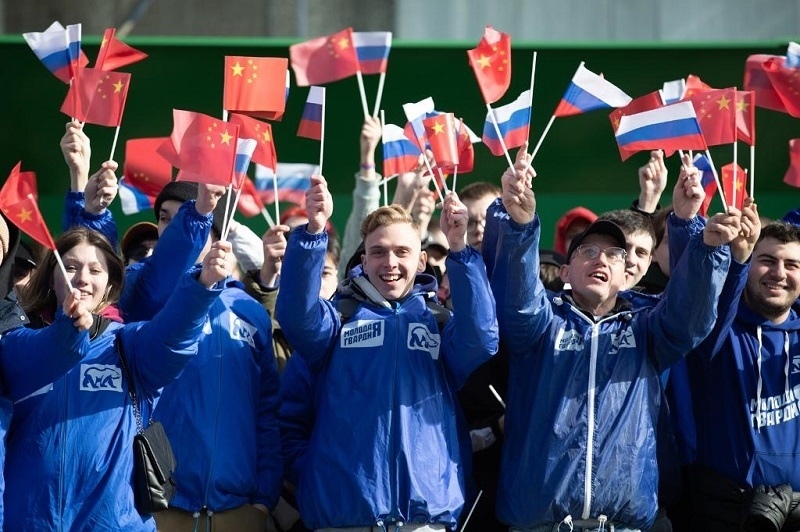 在中國領(lǐng)導(dǎo)人下榻酒店附近,眾多俄羅斯青年和中國留學(xué)生、中企員工、華僑華人熱情揮舞著兩國國旗?!盁崃覛g迎”的口號,同俄語的歡呼聲,交織在一起。