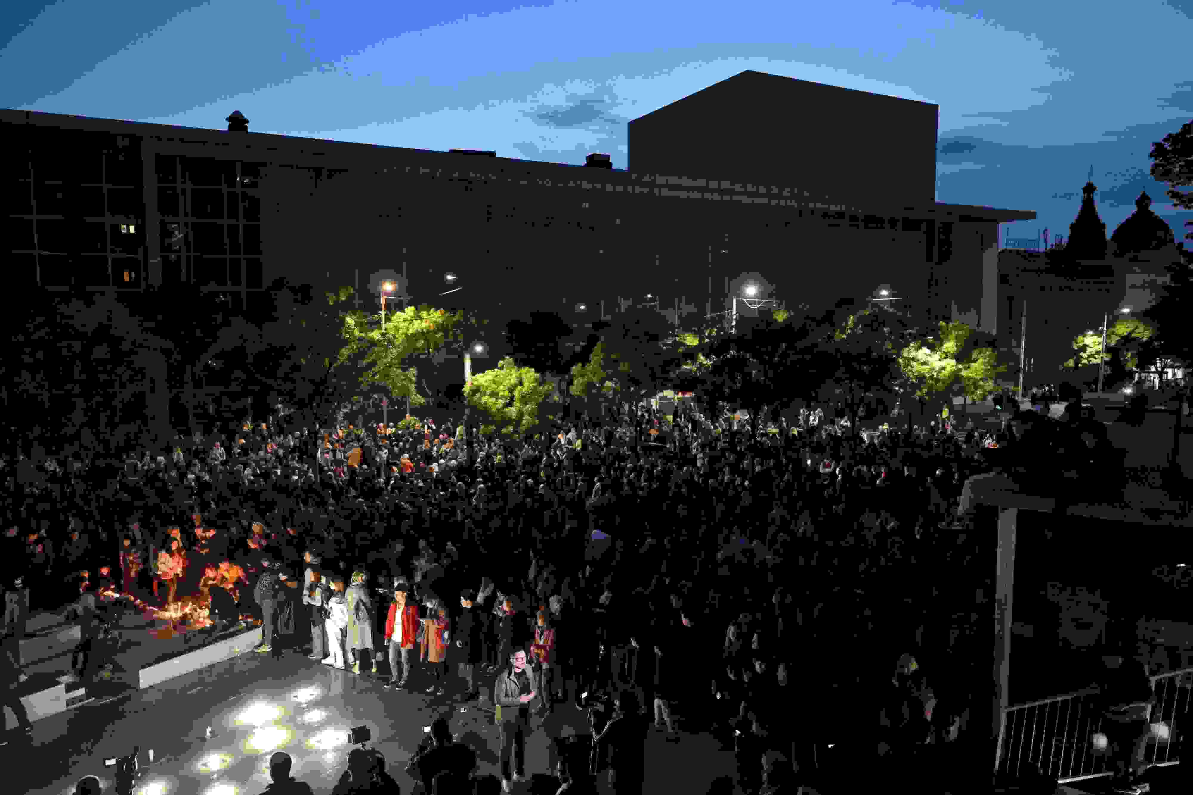 當(dāng)?shù)貢r(shí)間2023年5月3日,塞爾維亞貝爾格萊德,人們?cè)趯W(xué)校門前悼念遇難者。