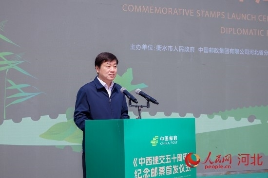 衡水市委副書記、市長董曉航在致辭中表示,郵票被譽為“國家名片”,中外聯合發(fā)行郵票是記錄國家重大外交事件和外交成就的重要載體。衡水湖榮登《中西建交五十周年》紀念郵票,向世界展示秀美風光,見證兩國友誼,感到非常振奮和自豪。衡水湖資源稀缺、稟賦獨特,素有東亞“藍寶石”、京津冀最美濕地的美譽,是全球候鳥遷徙線路上的重要驛站。在中國郵政集團的大力支持下,在人民網的全球推介下,衡水湖將以“郵”為媒、走向世界。