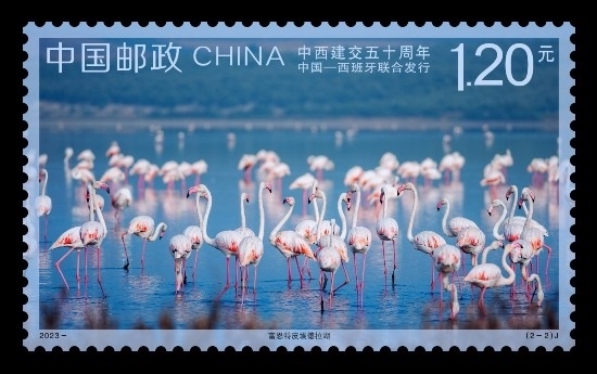 為紀念中西建交50周年,中國郵政定于2023年5月10日發(fā)行《中西建交五十周年》(與西班牙聯合發(fā)行)紀念郵票1套2枚,郵票圖案以西班牙的富恩特皮埃德拉湖和中國的衡水湖為題材,展現出兩國湖泊的旖旎風光和自然生態(tài)特征,畫面構圖簡約明快、表現意境清朗優(yōu)美。據了解,這是衡水湖首次作為“國家名片”出現在中外聯合發(fā)行的郵票當中。