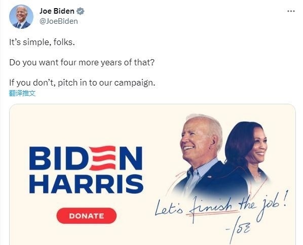 CNN注意到,在特朗普的直播結束后不久,美國總統(tǒng)拜登在社交媒體上發(fā)出了政治籌款呼吁,并配文稱,“很簡單,伙計們。 你還想再那樣過四年嗎?如果你不喜歡,請參與我們的競選活動?!?/p>