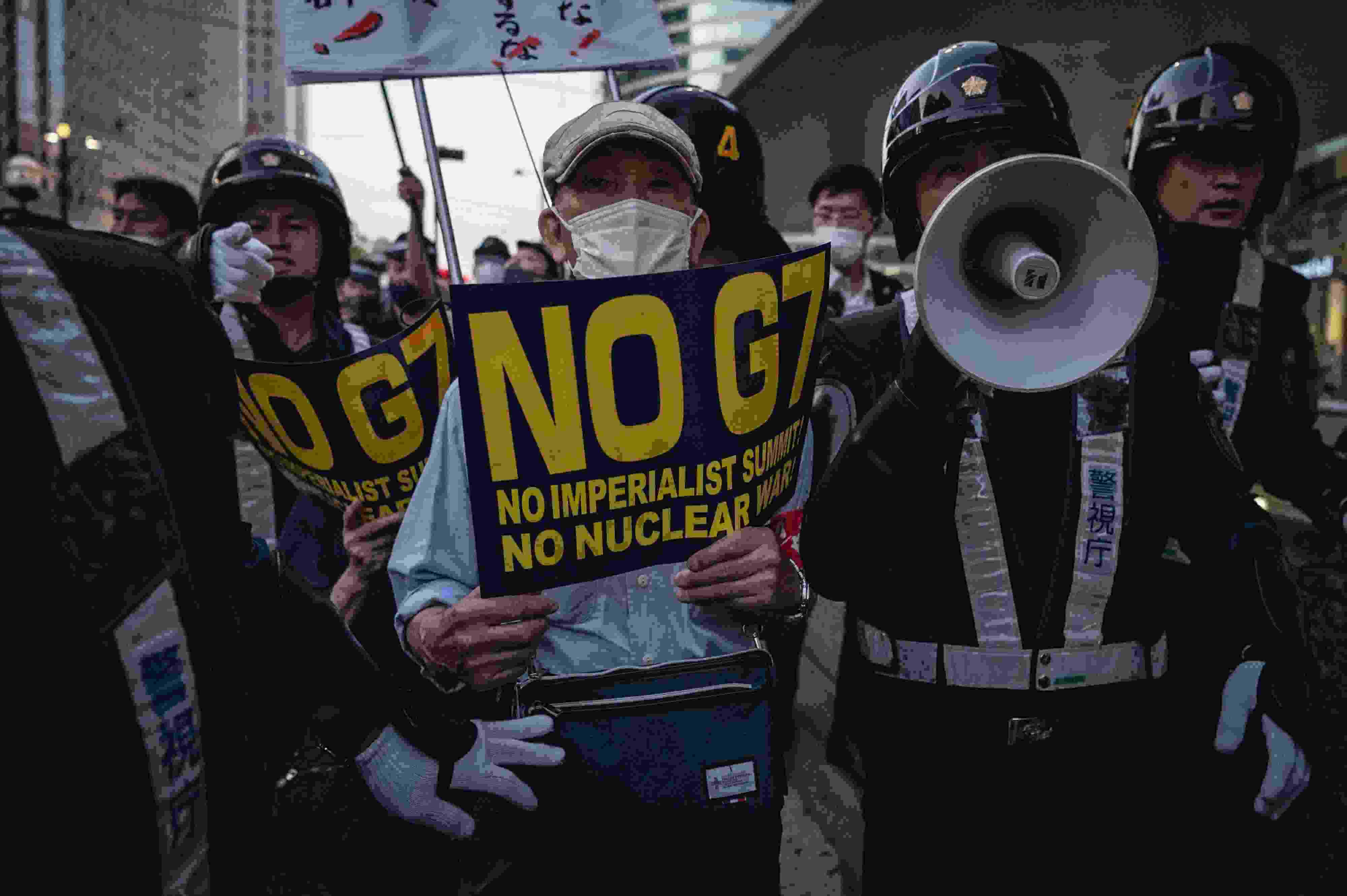 日本民眾抗議七國集團(tuán)峰會在廣島召開