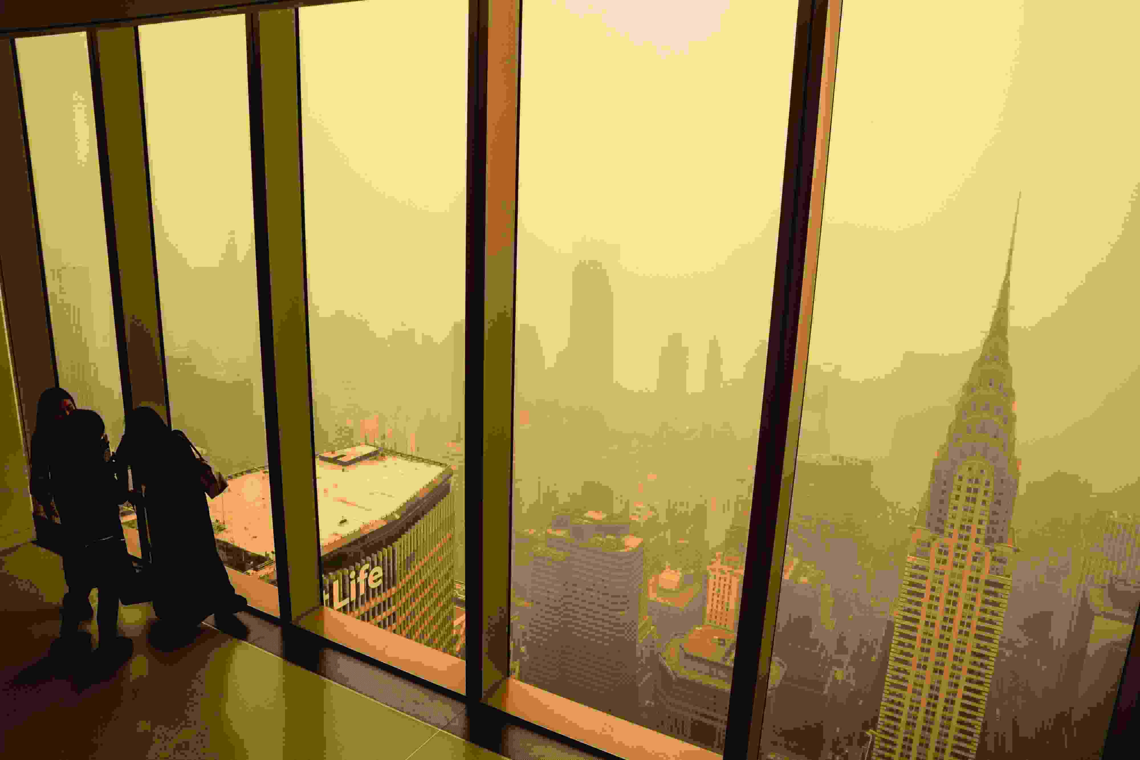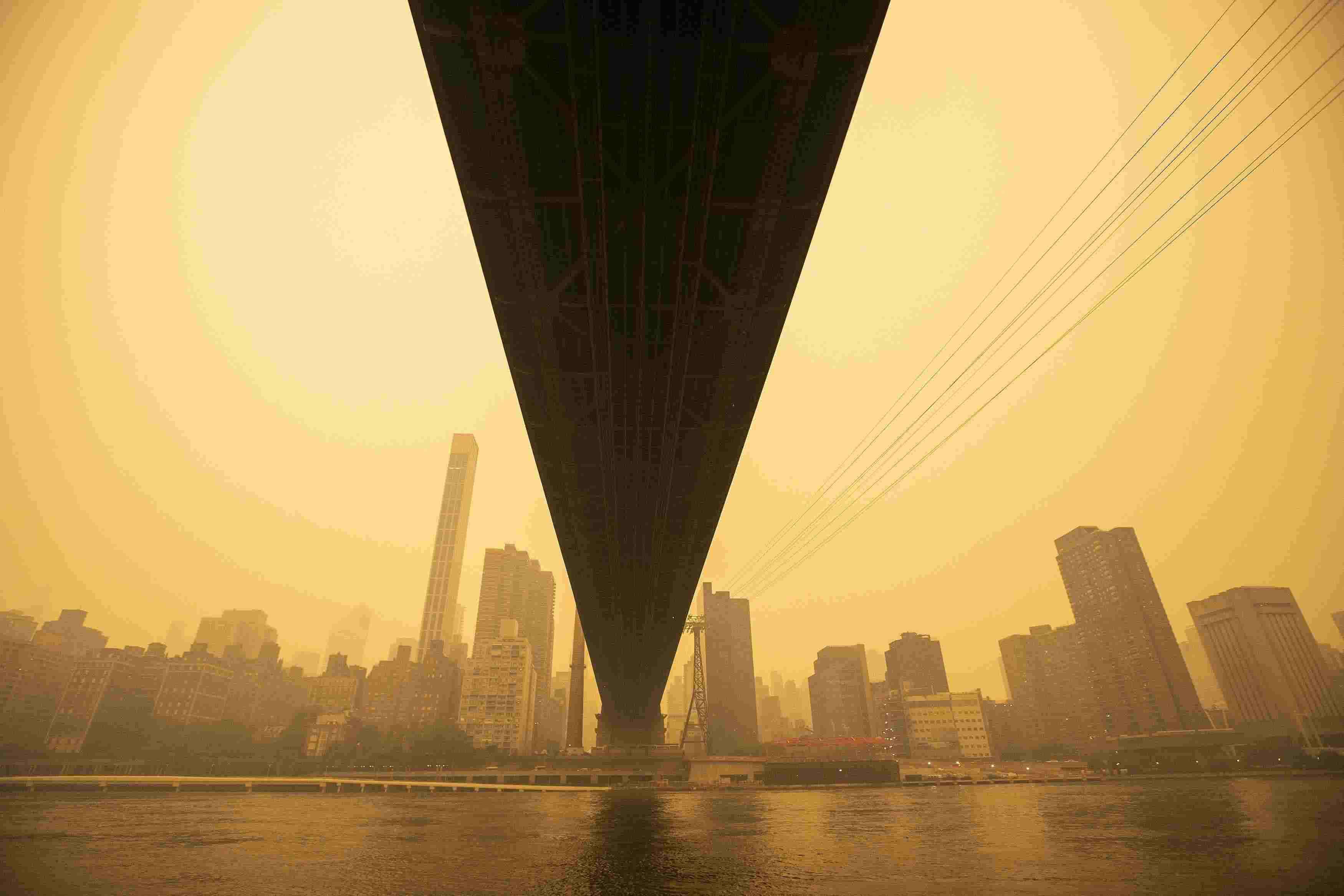 當(dāng)?shù)貢r間2023年6月7日,受加拿大野火煙霧持續(xù)南下影響,美國紐約籠罩在“橙色霧霾”中。當(dāng)天,紐約成為全球空氣污染最嚴(yán)重的城市。 視覺中國