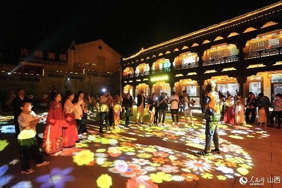 圖為郭峪古城燈光秀表演。人民網(wǎng) 盧鵬宇攝