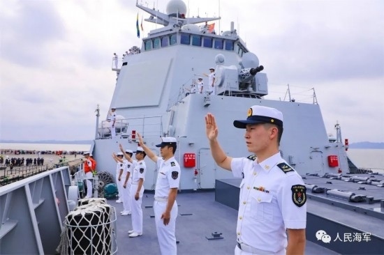 隨后,李津津大使及彭吉中將等一行人登上南寧艦進行參觀,彭吉中將在南寧艦艦長和政委的陪同下,檢閱了南寧艦儀仗隊。