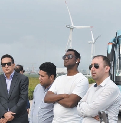 阿拉伯國家外交官在上海電氣集團臨港風場參觀。方盈眾攝