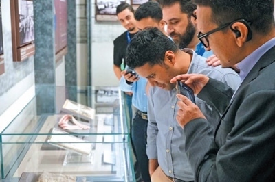 阿拉伯國家外交官在中共一大紀念館的展品前駐足觀看。方盈眾攝