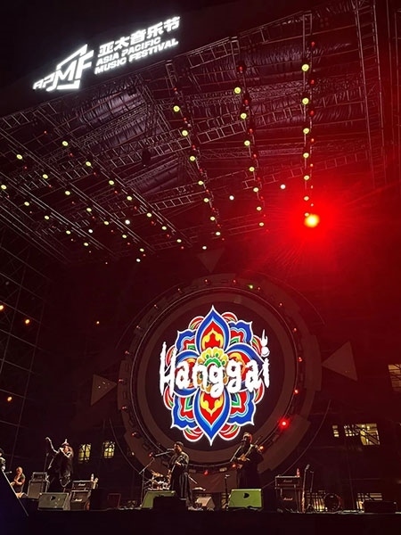 中國金屬硬搖滾樂的先驅(qū)——面孔樂隊(duì)演唱了《英雄》《幻覺》等經(jīng)典歌曲,讓人夢回青蔥歲月。當(dāng)熟悉的《愛不愛我》響起時(shí),全場觀眾都在齊聲合唱,周曉鷗也帶來了多首自己的新歌。羅琦的《我是一只小小鳥》瞬間激起了所有樂迷的熱情。王北車與觀眾開展了近距離互動,觀眾伴隨著音樂搖擺吶喊,掀起一波又一波熱潮。來自草原的杭蓋樂隊(duì)一上臺就引起了觀眾的熱烈反響,蒙古民間音樂與搖滾樂在草原激情碰撞。舞臺上,音符律動、唱跳狂嗨;舞臺下,尖叫不斷,釋放激情。