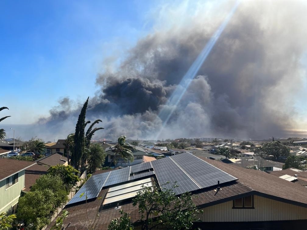 這張亞歷克斯·弗里曼8月8日拍攝的照片顯示,美國夏威夷州毛伊縣拉海納鎮(zhèn)上空濃煙滾滾。新華社發(fā)(亞歷克斯·弗里曼攝)
