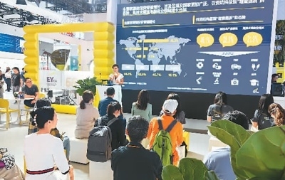 “零碳服貿(mào)”、綠色服貿(mào),向全球伙伴展示中國服務(wù)業(yè)的綠色未來。多個(gè)國家、地區(qū)和國際組織在本屆服貿(mào)會期間舉辦密集活動,聚焦綠色發(fā)展、循環(huán)經(jīng)濟(jì),推介最新成果,促進(jìn)環(huán)保服務(wù)等領(lǐng)域合作開放。