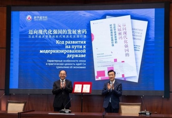 會議重點宣介和展示的新華社國家高端智庫報告《邁向現(xiàn)代化強國的發(fā)展密碼——習近平經(jīng)濟思想的時代特質和實踐價值》引發(fā)與會各國嘉賓廣泛關注。該智庫報告是新華社研究習近平新時代中國特色社會主義思想的創(chuàng)新成果,從哲學維度、方略維度、戰(zhàn)術維度和全球視野,全面闡釋習近平經(jīng)濟思想的核心要義、精神實質、豐富內涵,以“美”“實”“效”“協(xié)”“共”五個關鍵字深入解讀習近平經(jīng)濟思想的鮮明特征,系統(tǒng)展現(xiàn)了其中所蘊含的大國經(jīng)濟治理智慧。