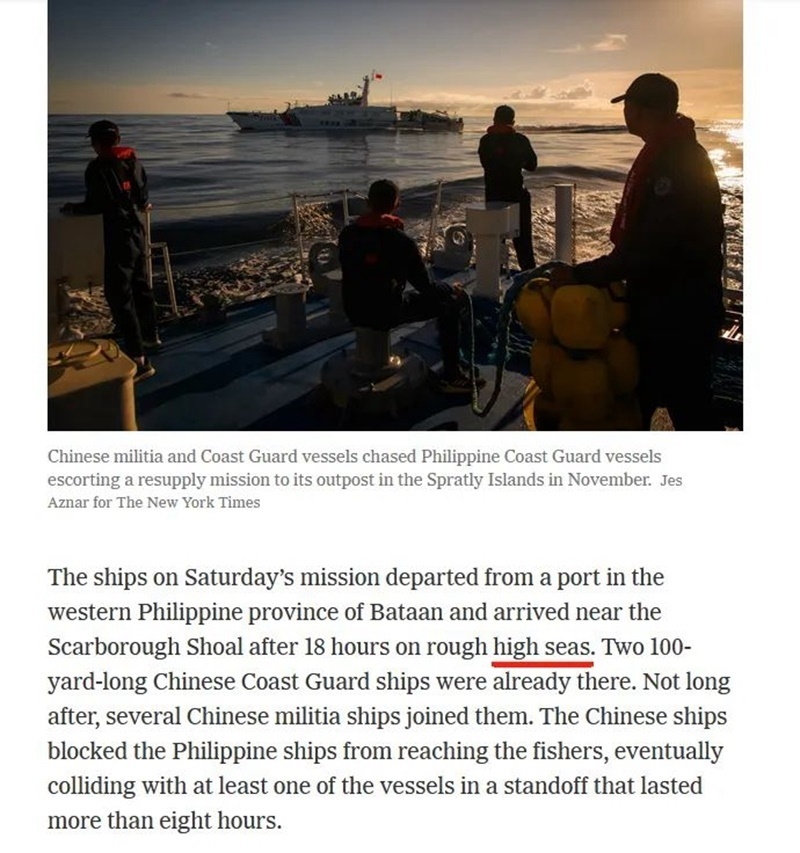 事件發(fā)生后,《紐約時(shí)報(bào)》也按計(jì)劃“交差”,刊發(fā)文章“力挺”菲方,試圖把中方塑造成“霸凌者”,在國(guó)際輿論上為菲方博取更多同情,向中方施加更大壓力。
