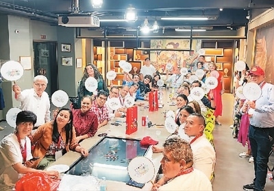 “漢語橋”哥倫比亞教育工作者訪華團(tuán)組到天津楊柳青古鎮(zhèn)體驗(yàn)?zāi)戤嬛谱鳌?/p>