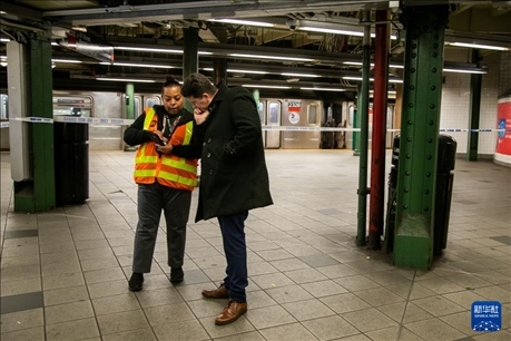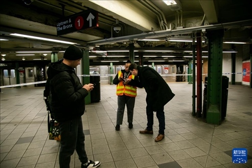 1月4日,在美國紐約,工作人員在地鐵站臺(tái)為乘客提供幫助。新華社發(fā)(郭克攝)
