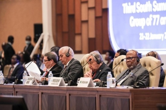1月21日,聯(lián)合國(guó)秘書(shū)長(zhǎng)古特雷斯(右二)參加在烏干達(dá)首都坎帕拉舉行的“77國(guó)集團(tuán)和中國(guó)”第三屆南方首腦會(huì)議。 新華社發(fā)(阿佳拉·納瓦達(dá)攝)